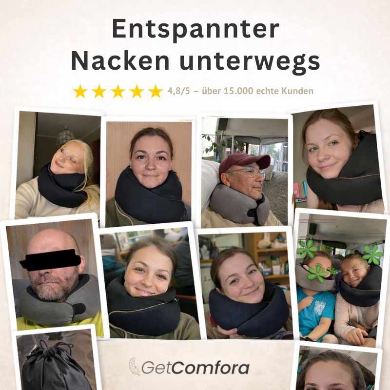 Normale Nackenkissen lassen deinen Kopf wegkippen. ComfyHug hält ihn!